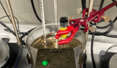 使用带有加热功能的磁力搅拌器时,一定要留意温度探头的放置。还有,如果用盐和冰混合物来冰浴的话,因为温度很难保持稳定,所以记得要定时搅拌来使各处温度一致。