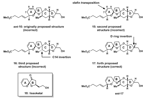 图6:Molecular Structure of Lissoketal 18 & Revised Compounds during the Structure Elucidation