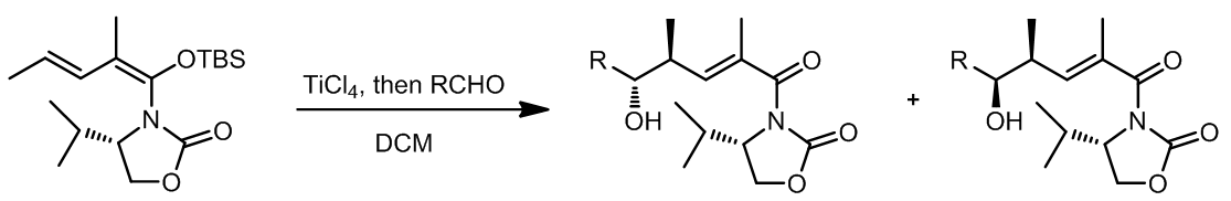 Crimmins发现了可以得到Evans-syn-aldol产物和非Evans-syn-aldol产物的反应条件,反应中需要用到钛作为配合试剂,这个方法的发明大大增加了钛烯醇在aldol反应中的使用范围。Ref. 3