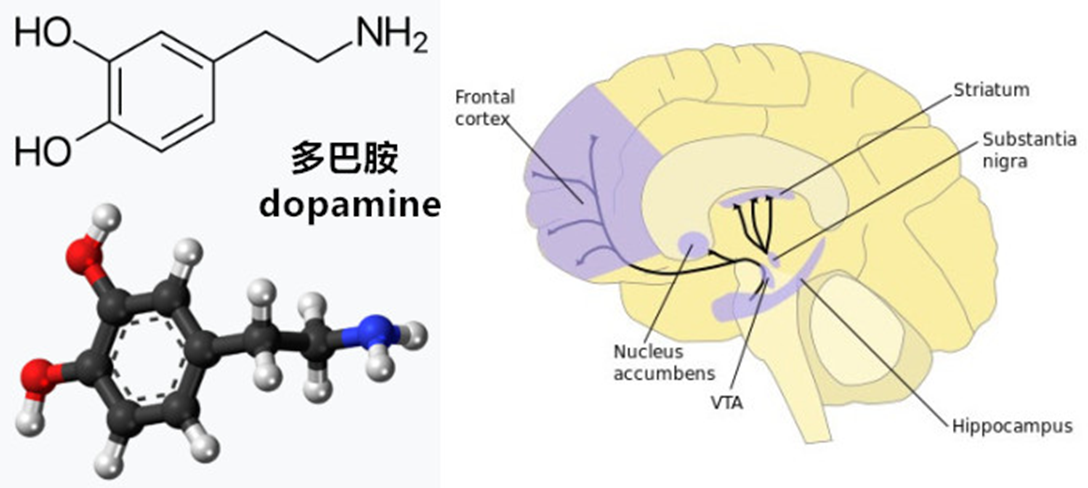 图8多巴胺的结构以及大脑-中脑边缘系统通道