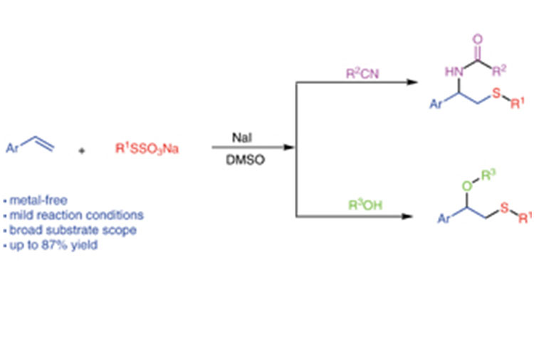 - Bunte盐作为无味的硫醇等价体,除了可以用于烯酮的迈克尔加成[7]外,可以用于烯烃的加成[8]。