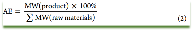 定义:产品的分子量与所有投入原料分子量之和的商,举例如下: