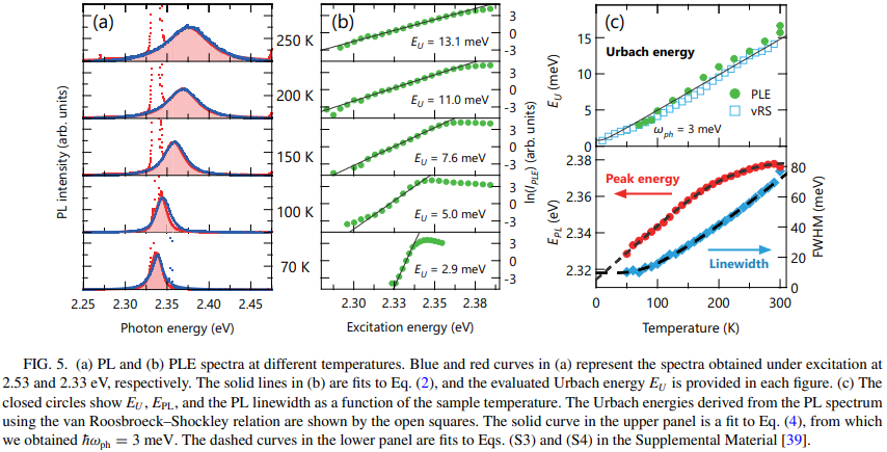 在这项研究中,研究小组首先表明CsPbBr3/Cs4PbBr6对连续光照射非常稳定。此外,观察到了高效的Anti-Stokes发射(Fig .4),并估计光学冷却所需的发射量子效率为97%。考虑到目前报道的CsPbBr3/Cs4PbBr6的发射量子效率为97%以上,原则上可以用这种材料实现半导体光冷却。研究小组还在低温下进行了测量,即使在70 K (= -203 °C)的低温下也成功地观察到了Anti-Stokes发射(Fig. 5)。这个温度低于稀土系统光学冷却的最低温度90K,如果发光效率足够高,有可能在比以前更低的温度下实现光学冷却。