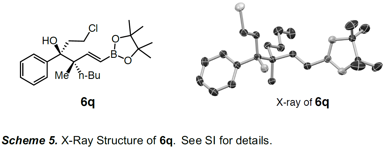 产物的相对和绝对构型的立体化学,作者也通过晶体的培养获得1q的单晶,并通过X-射线衍射确定了产物的最终构型(Scheme 5)。如所预期一致,羟基和正丁基取代基处于反式,对应的酮取代基位于假平伏键上。