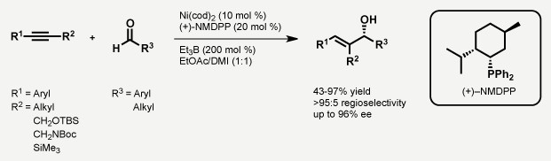 Reductive coupling reactions between alkynes and aldehydes