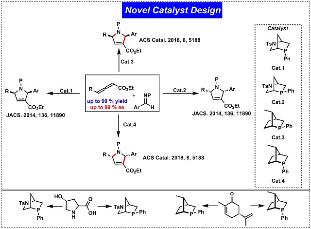 简单有机分子催化(与过渡金属催化反应相比)近年来引起了学术界和工业界的广泛关注。Kwon 教授在有机催化这一领域的贡献是有机膦催化的发展。开发的膦催化剂结构简单,易于操作,仅需要催化量的膦作为试剂以及在反应后仅需要简单操作就可以获得优异的收率的所需产物1-3。 迄今为止,已经开发了超过二十种新的膦催化的反应,如[3+2]环加成4,