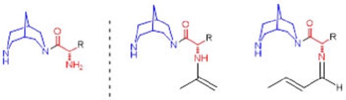 天然产物sparteine(中文名:金雀花碱、鹰爪豆碱)及其结构类似物是不对称催化反应中常用的手性配体,其核心结构是一种具有双胺骨架。通过引入合适的手性基团并结合司巴丁及其类似物的双胺结构,为开发新的不对称催化剂提供了新的机会。通过不断的努力,冯院士小组研究表明:嵌在Bispidine/氨基酸骨架中的手性二胺有机催化剂对于丙酮与官能化酮的直接羟醛缩合反应、硝基烯烃与丙酮、丁酮和环酮的Michael反应中都表现出很好的催化作用16,17(图5)。