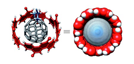 Isobe教授利用其合成的单层碳纳米管(SENT),与富勒烯组装成一个peapot状的分子轴承(molecular bearings)[2a]。与传统的分子轴承(molecular bearings)不同,该分子轴承是固态的,为其性质研究带来了便利。同步辐射X-射线衍射(synchrotron X-ray diffraction)表明,该结构内部是一个光滑无拐点的Hirshfeld面,富勒烯客体分子能在进行动态运动,且根据温度的不同,有进动(Procession)和转动(Spin)两种类型[2b-d]。