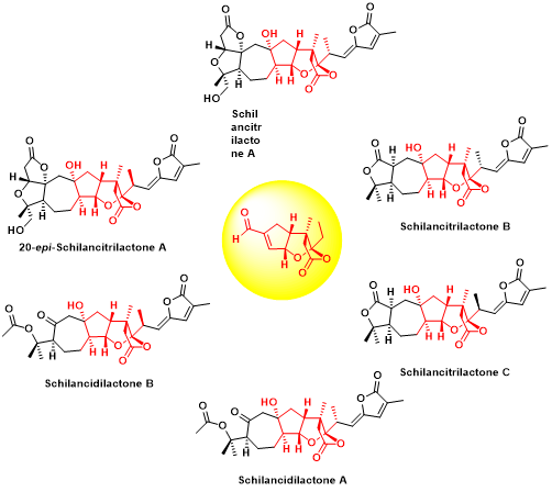 全合成是由简单的或可商购的前体完成的复杂分子(通常是天然产物)的完整化学合成。 汤小组特别关注具有重要生物活性成分,这些成分可以进一步氟化以用于生物活性测试。汤小组首次从常见的中间体中完成了Schilancidilactones A, B and Schilancitrilactones A, B, C 的全合成(图 1 )2。 关键步骤包括分子内自由基环化,后期卤化和AIBN介导或Ni催化的分子间自由基交叉偶联反应。
