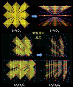 利用低温拓扑化学反应,成功地将钙钛矿氧化物SrFeO3转化为具有平面4配位键结构的SrFeO2 [3]。在4配位键的金属中首次发现了自旋转移现象[4]。