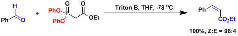 膦酸的叶立德和醛化合物进行加成反应能得到α,β-不饱和酯。本反应的反应机理和Wittig reaction 的反应机理相似。