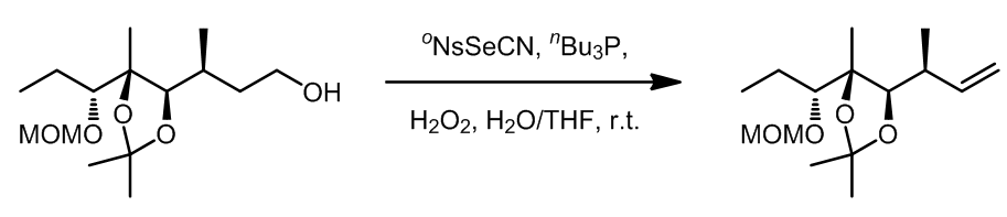 Grieco消除反应中使用到了硒试剂作为氧化剂,反应中发生的是热力学消除,反应对于1o醇效果非常好。反应中试剂活化的过程和Mitsunobu反应类似,此外第二步的氧化过程中氧化剂的选择范围很广,常见的有H2O2,m-CPBA,等。