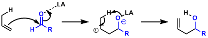 醛与烯丙基化合物在路易斯酸or质子酸的存在下,发生的加成反应,得到单烯丙基醇产物。