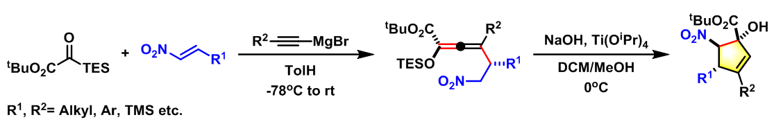 目前,该反应已经成为硅氧基联烯合成时最为常用的方法[5]。同时,采用不同的亲电底物将重排产生的联烯基锂捕获,可以方便地构建采用常规方法难以合成的各类有机分子[6]-[8]。