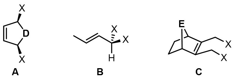 常见的内消旋烯丙基化合物有以下三类,这些烯丙基化合物发生过渡金属的氧化加成产生一对对映异构体。