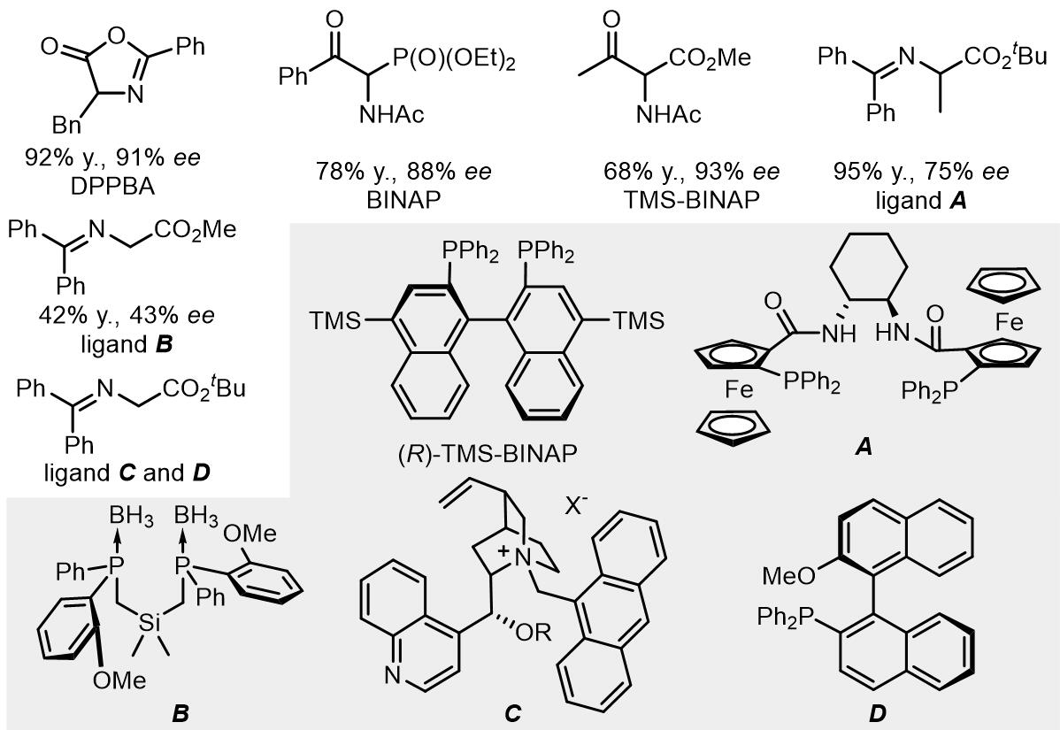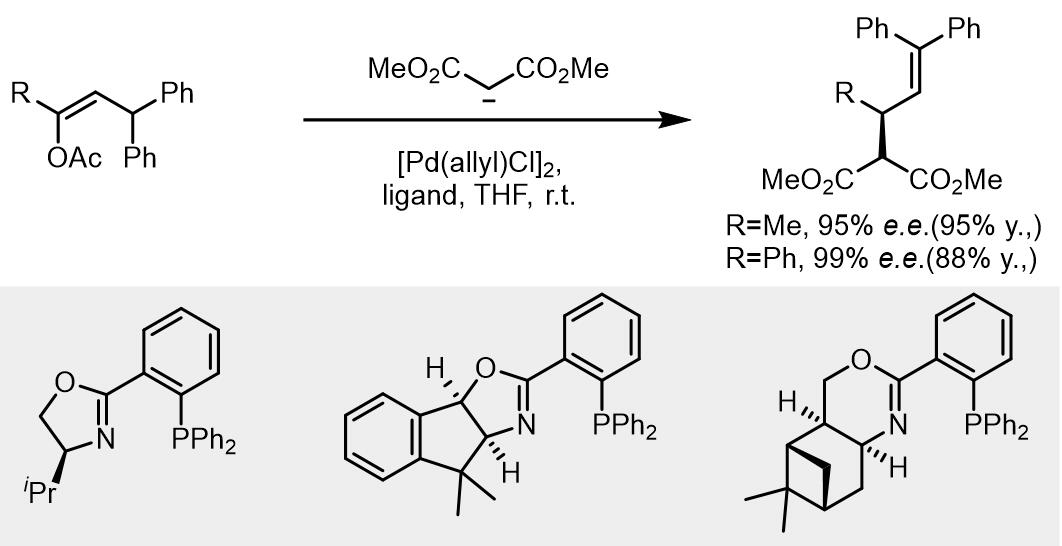 烯醇作为亲核试剂的反应使用的配体开发较多,这里是一个比较有代表性的反应[36]: