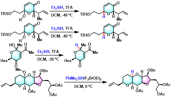 Kishi 还原 (Kishi reduction)是在Lewis酸或Brønsted酸作用下,三乙基硅烷对各类吡喃糖[1]、半缩醛[2]、半缩酮[3]以及缩酮类[4]化合物的化学选择性与立体选择性还原反应。该反应由美国Harvard大学化学系 (Department of Chemistry, Harvard University)的日本籍化学家Kishi (岸 義人, Kishi Yoshito)在1982年首次报道[1]。